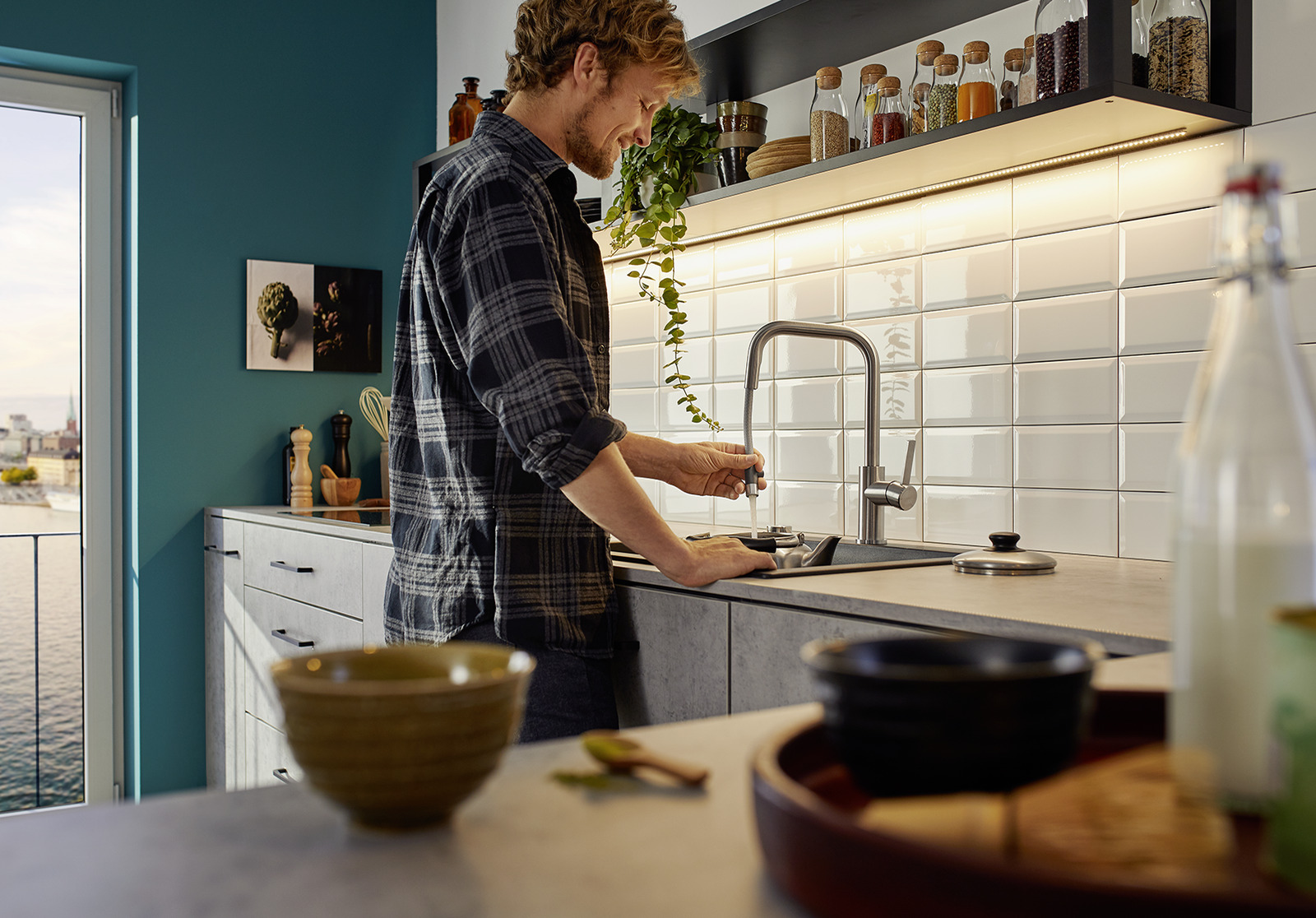 •  חופש תנועה מוגבר בהתקנה צמודת קיר הודות לידית שליטה עם מצב ניטרלי אנכי
