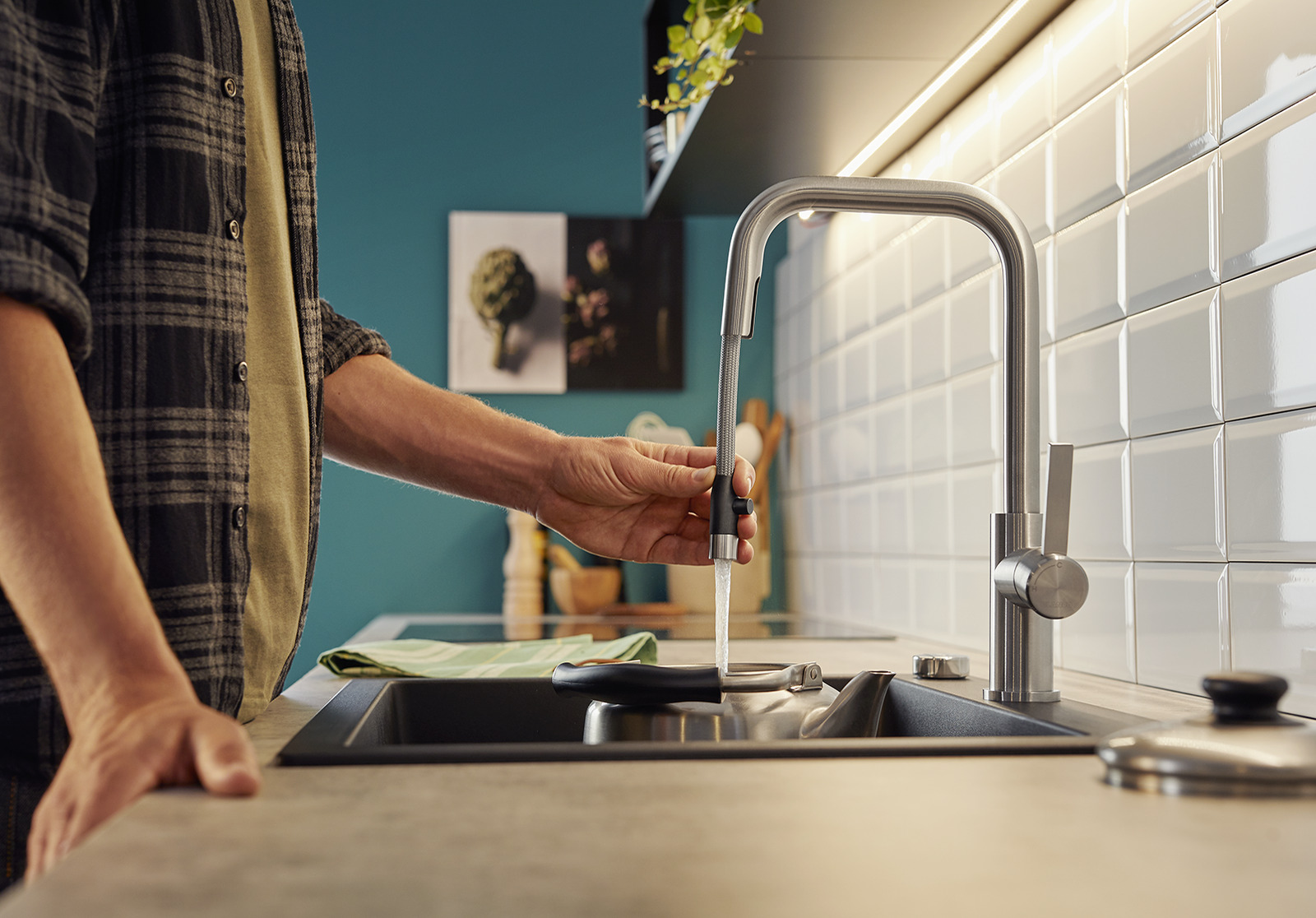 • ראש התזה נשלף מוסתר לשמירה על מראה נקי ונוחות עבודה