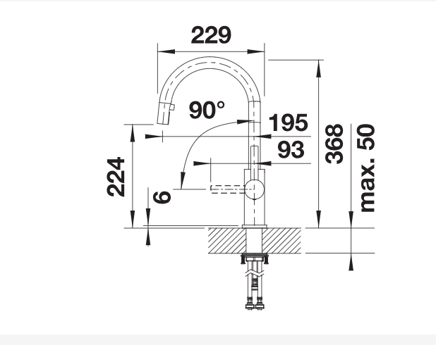 הפיה הגבוהה מאפשרת מילוי נוח של סירים, כלי בישול ואגרטלים, עם מרחב עבודה פתוח סביב הכיור.