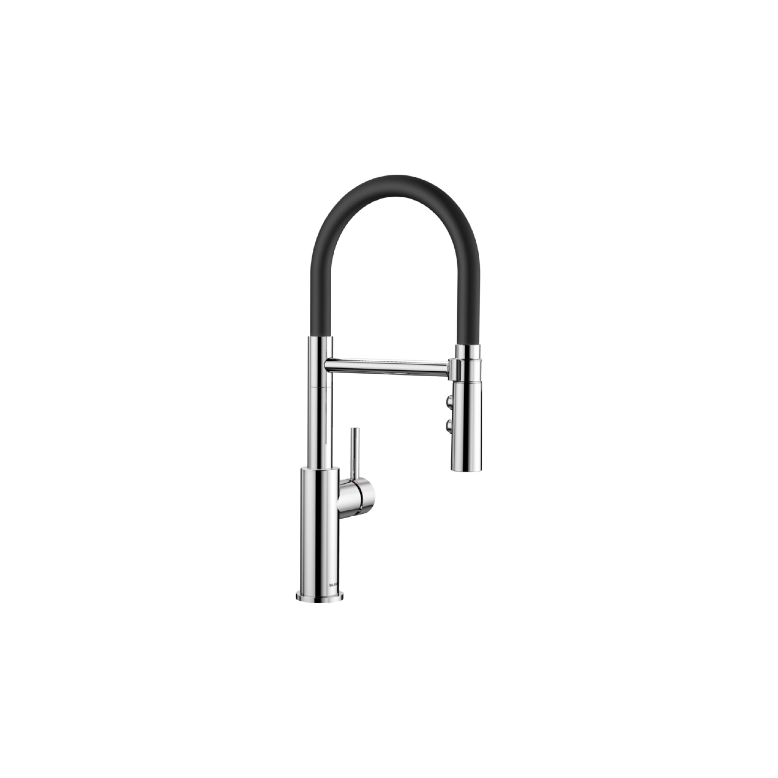 ברז CATRIS‑S Flexo מעוצב בסגנון מטבח מקצועי, עם פיה גמישה ונשלפת המאפשרת שליטה מלאה בכיוון הזרימה ונוחות עבודה גבוהה במיוחד.