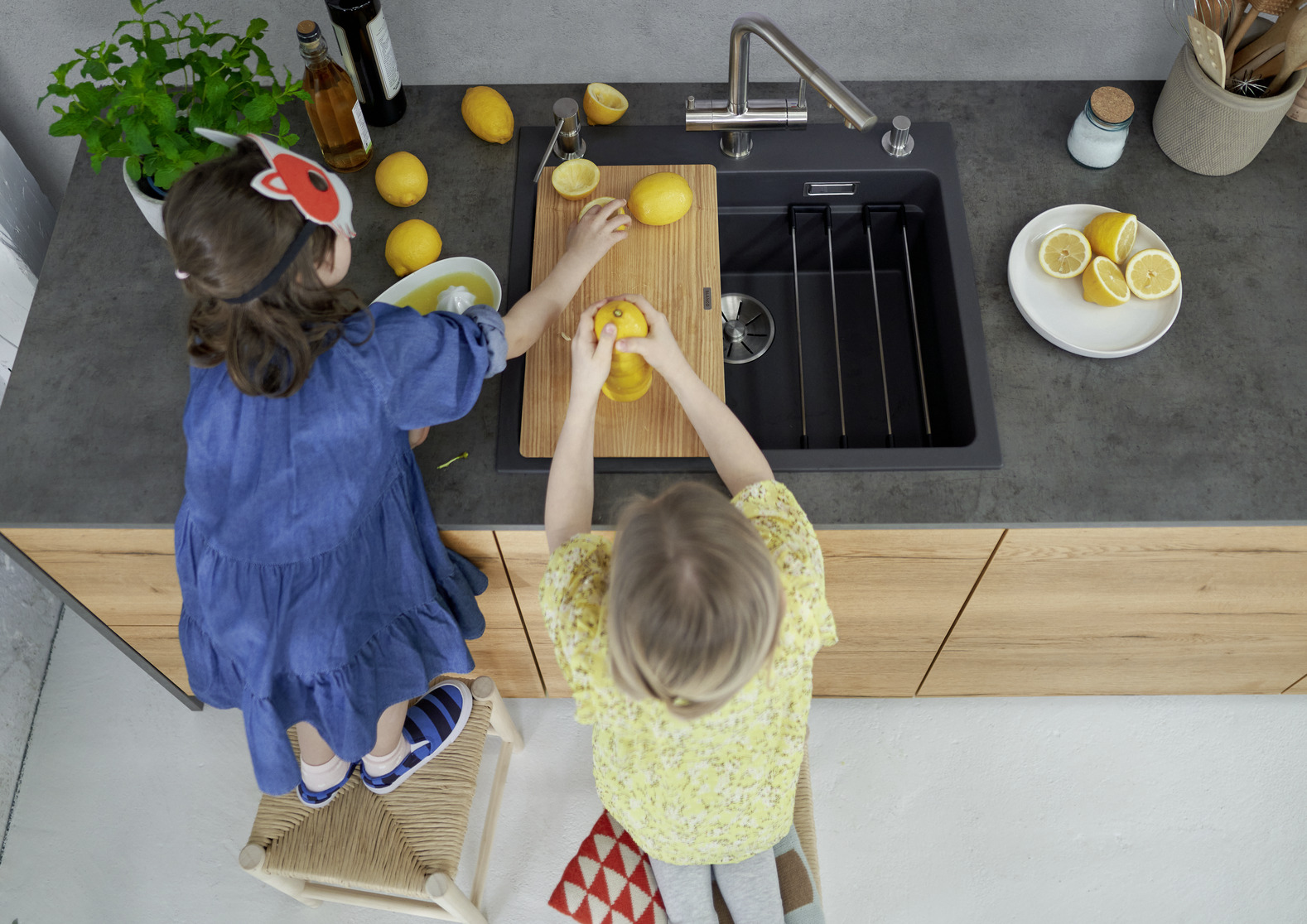 הכיור כולל תשתית שלבים המאפשרת עבודה בכמה גבהים במקביל — אידיאלית לשטיפה, סינון, ייבוש והכנה.