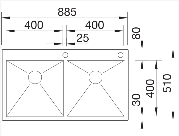 כיור עם שתי קערות שוות בגודל. אידאלי לעבודה משולבת של שטיפה והכנה, ומספק חלוקת עבודה נוחה במטבח.
