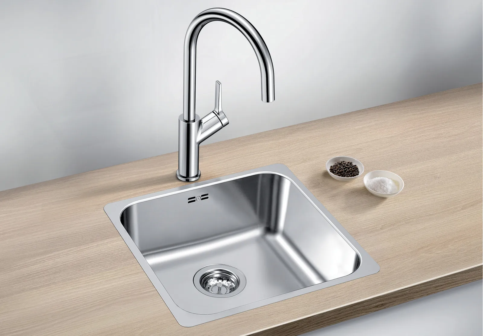 כיור יחיד מנירוסטה בעיצוב פונקציונלי ונקי