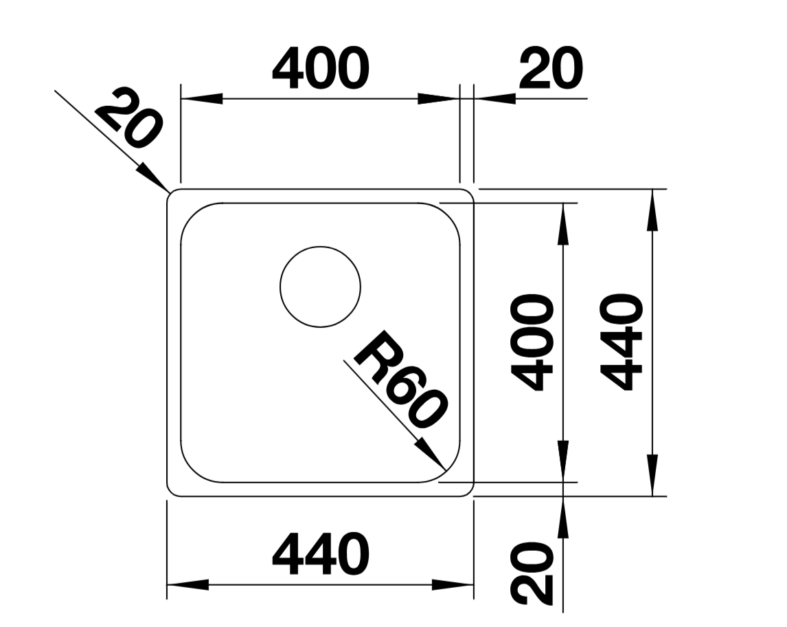 מיקום פתח הניקוז בחלק האחורי של הקערה הגדיל את שטח העבודה והעמדת כלים בתוך הכיור ומשאיר מקום שימושי בארון שמתחת.