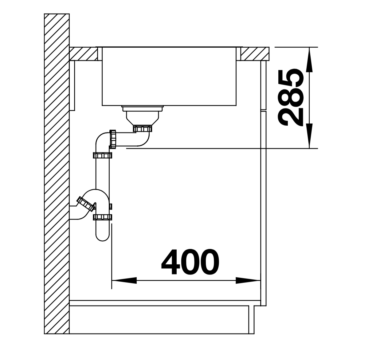 מיקום ניקוז אחורי לניצול נפח הקערה