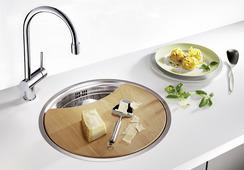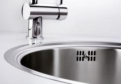 הכיור בעל צורה עגולה חלקה עם גימור מוברש מפלדת אל-חלד, מה שמעניק מראה מודרני, אלגנטי וייחודי במטבח.
