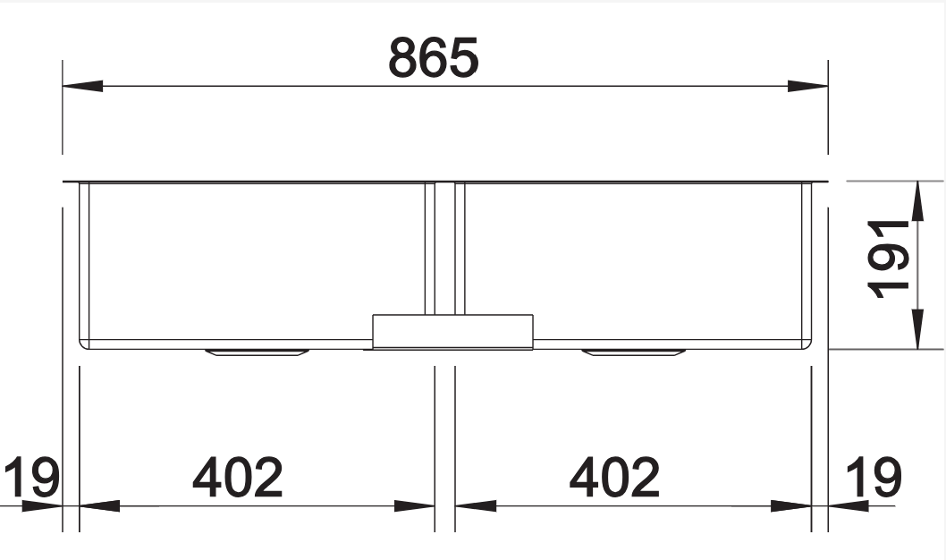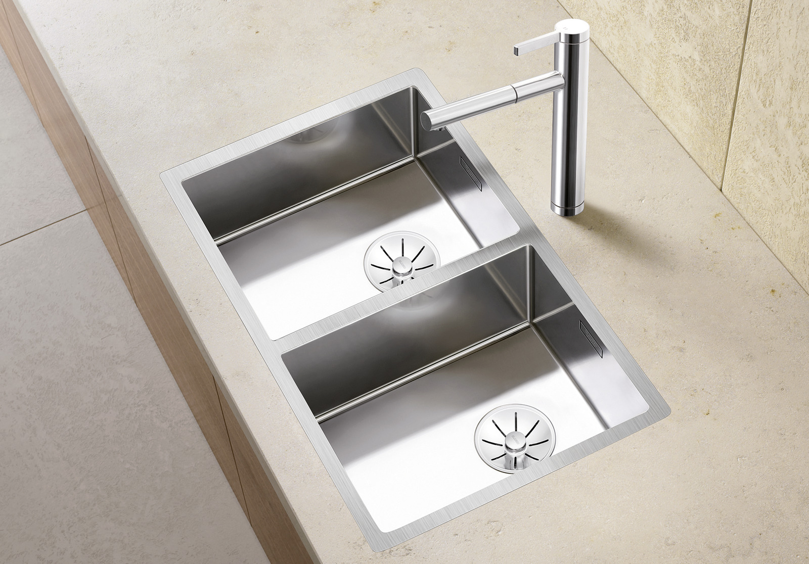 • קערה כפולה: משטח פונקציונלי עצמאי שאינו מחולק על ידי מחיצת גרניט. נדרש רק פתח אחד במשטח העבודה